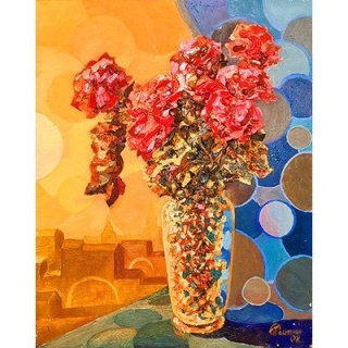 Декоративная стилизованная живопись. Масляная краска положена на загрунтованный холст очень толстым рельефным слоем, подрамник,